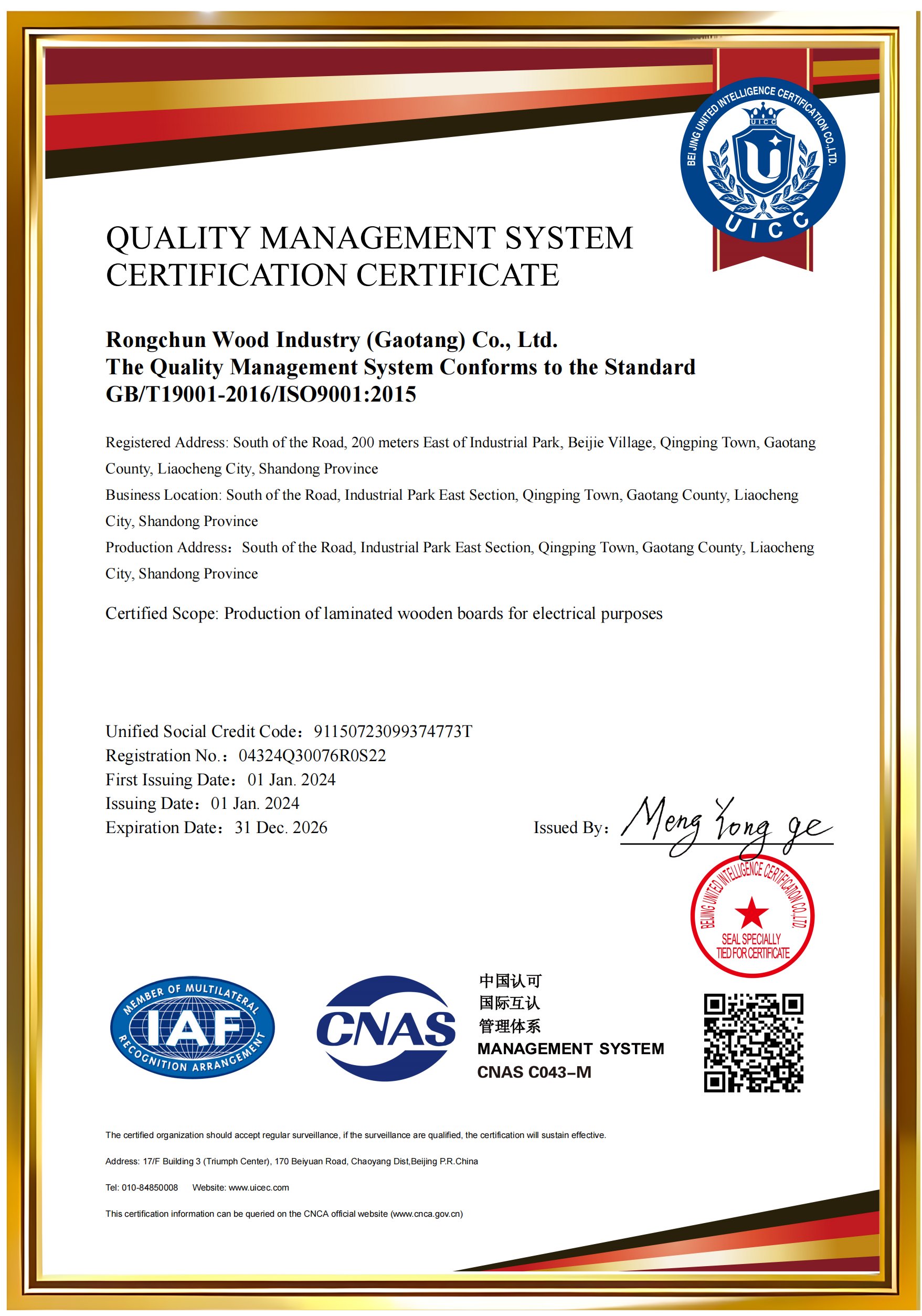 Rongchun Wood Industry (Gaotang) Co., Ltd., located in Gaotang County, Liaocheng City, Shandong Province, China, covers a production area of over 20,000 square meters. Since its establishment in 2014, we have focused on the R&D and manufacturing of Electrical Laminated Wood and Insulation Components for oil-immersed transformers, and have grown to become one of the key global suppliers of insulation materials.